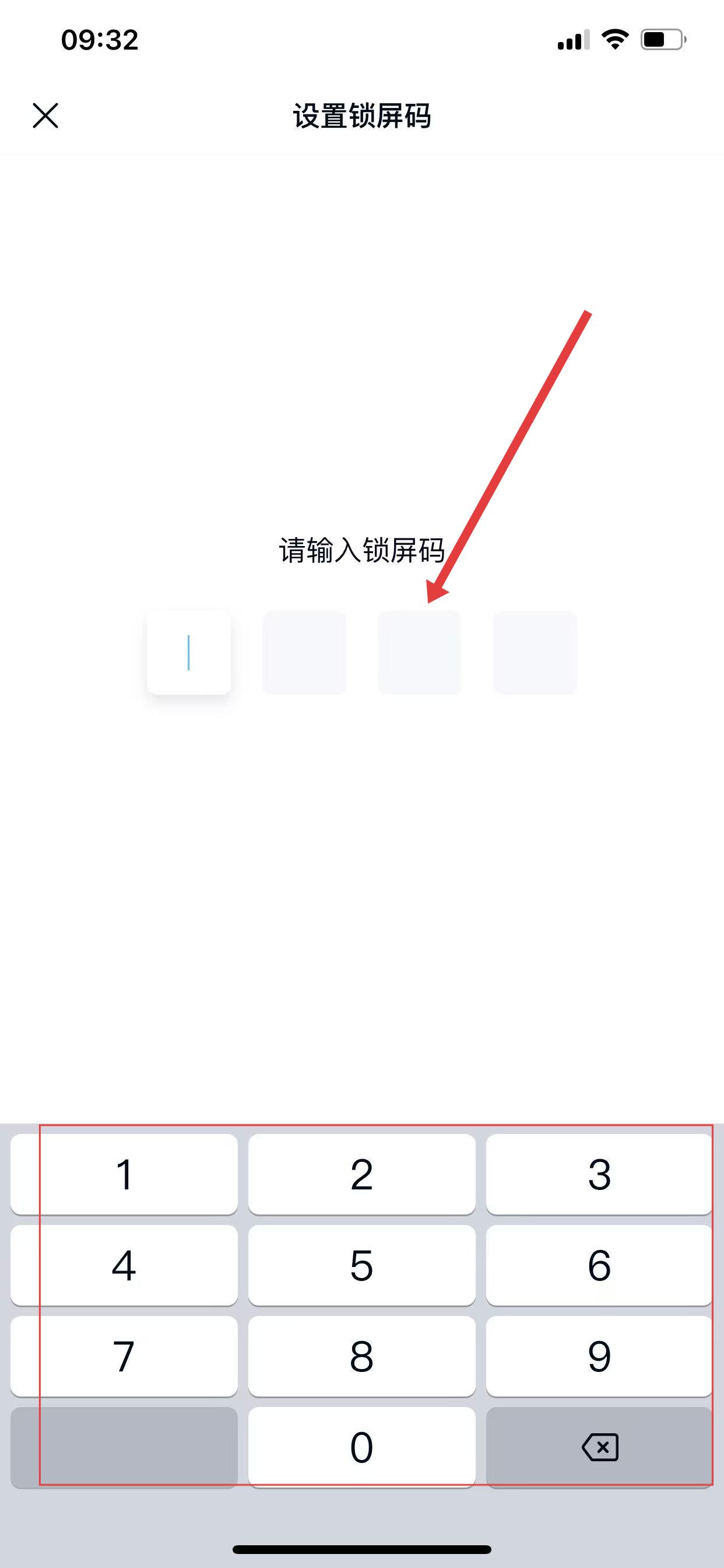 3、開啟后會彈出設置鎖屏碼界面,在下方的數字鍵盤中輸入想要設置的4位鎖屏密碼,即可完成百度網盤鎖屏密碼的設置。