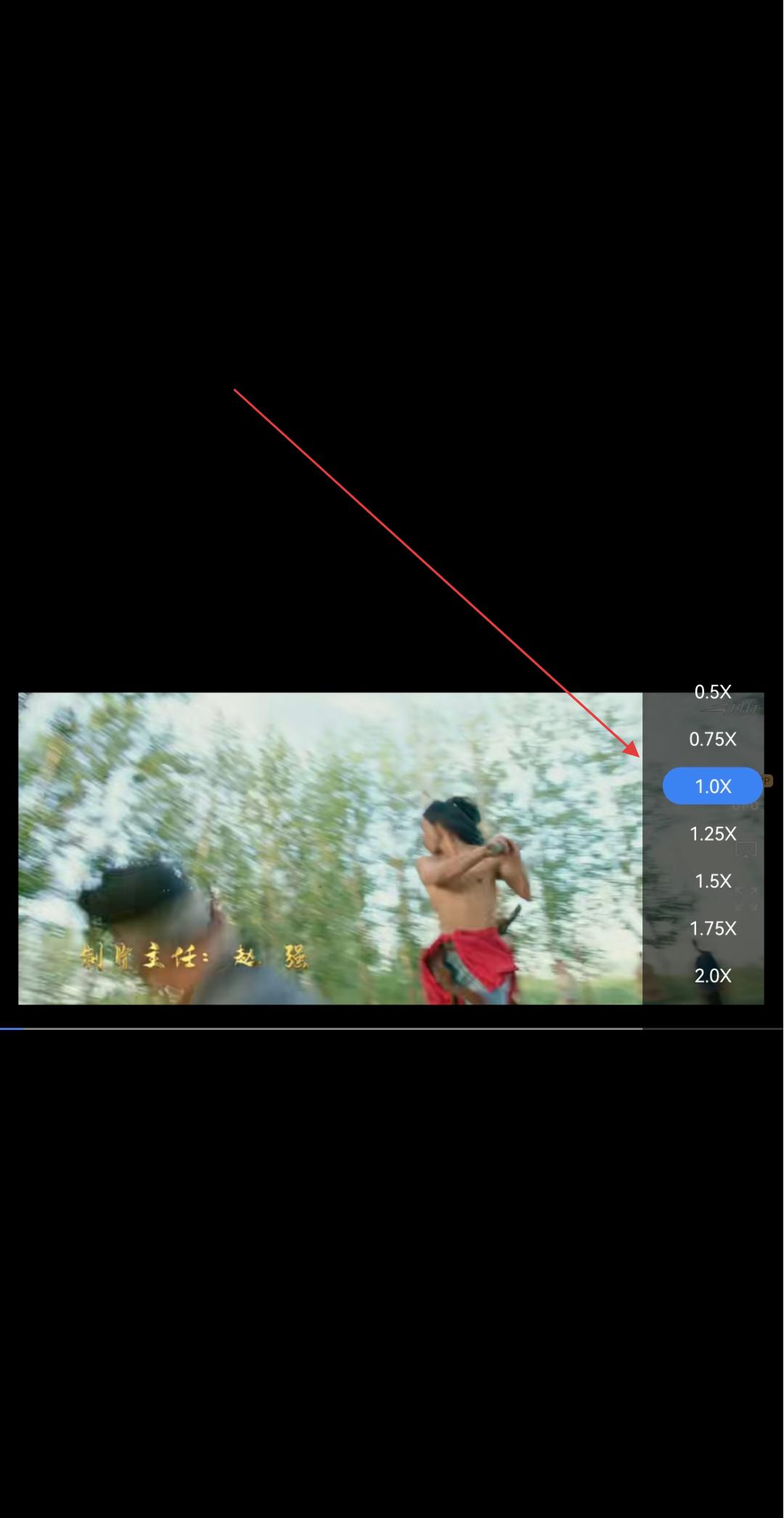 3、在倍速列表中選擇所需播放速度如0.75X、1.25X等,實(shí)現(xiàn)視頻的倍速播放。