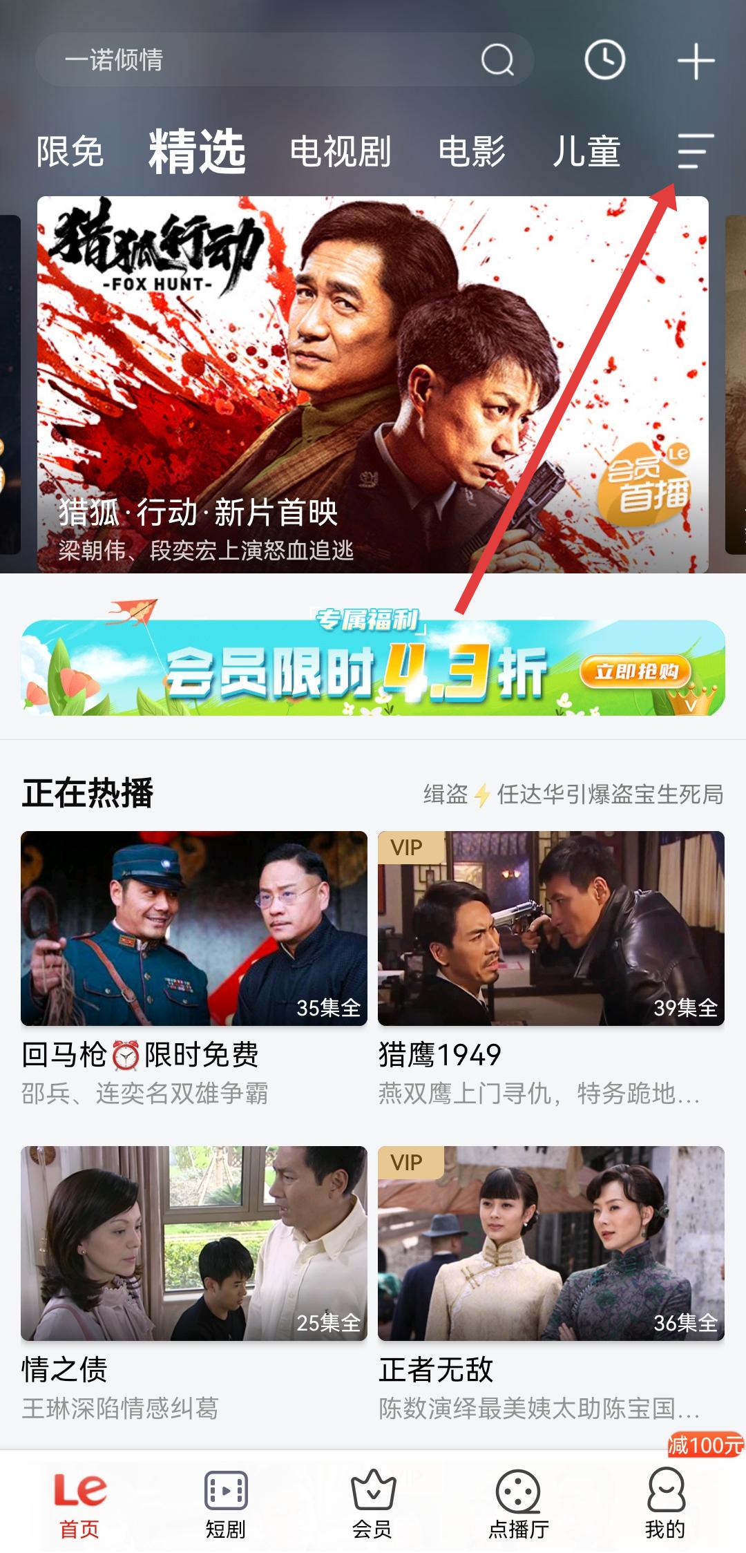 1、打開樂視視頻APP,進(jìn)入首頁后,點(diǎn)擊頁面右上角的頻道菜單按鈕,進(jìn)入頻道設(shè)置頁面。