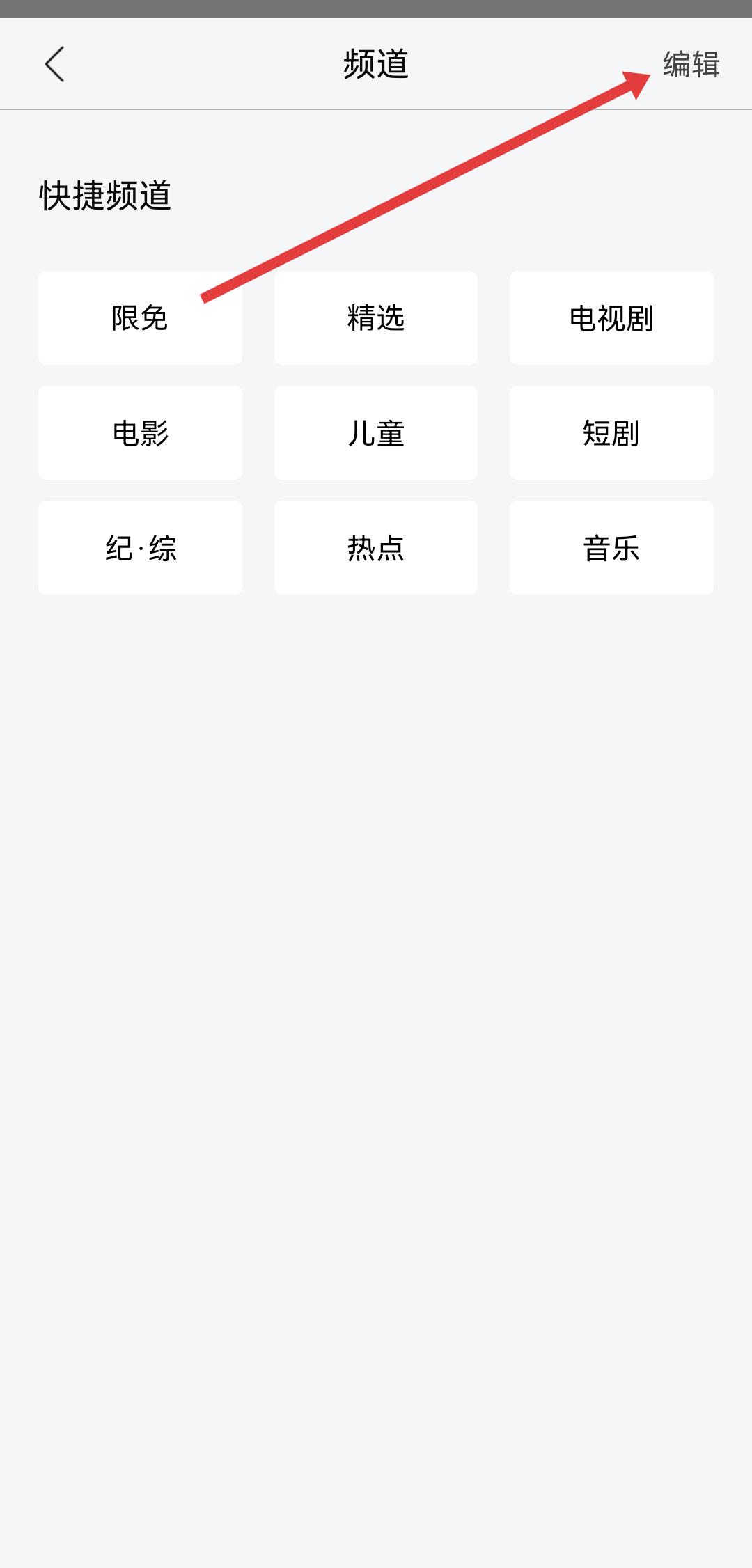 2、進(jìn)入到頻道設(shè)置的頁面中,需要找到右上角的編輯按鈕并進(jìn)行點(diǎn)擊。