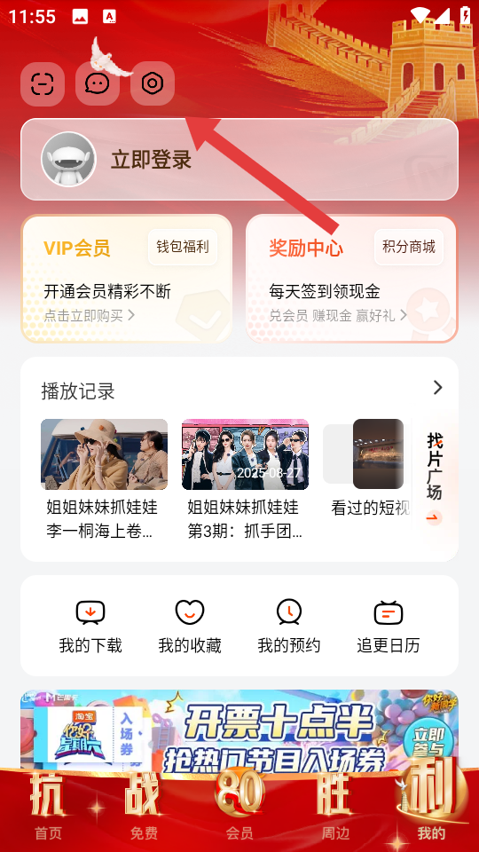 1、打開芒果TV,點擊底部導(dǎo)航欄的我的,進入個人中心頁面,再點擊頁面右上角的設(shè)置圖標(biāo)。