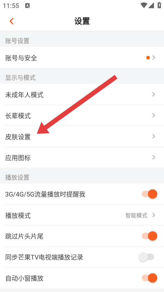 2、進入設(shè)置的界面后,需要找到并點擊皮膚設(shè)置的選項,進入皮膚設(shè)置的頁面。