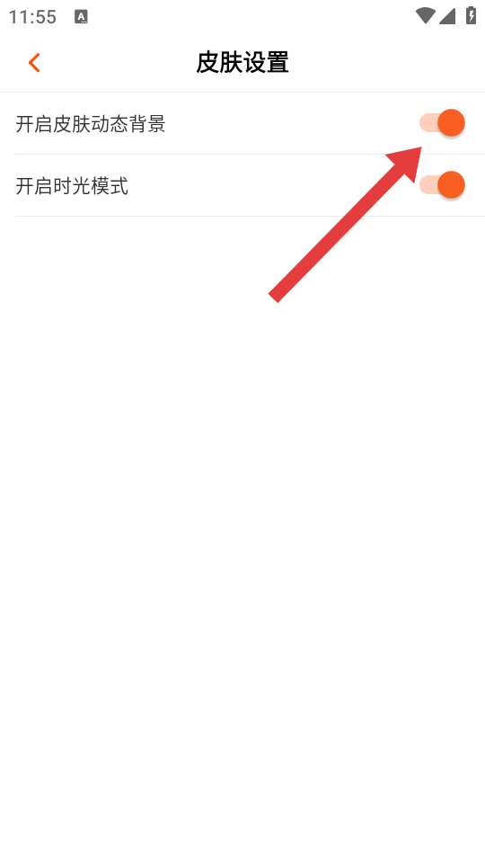 3、在皮膚設(shè)置頁面中,找到開啟皮膚動態(tài)背景選項,開啟其右側(cè)的開關(guān),成功設(shè)置皮膚動態(tài)背景。