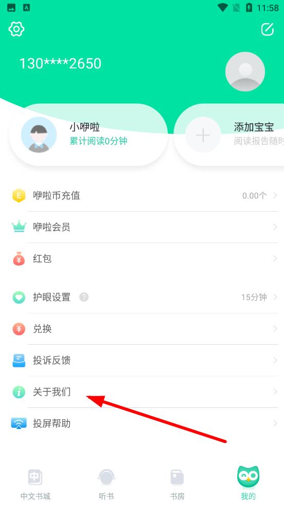 2、在我的頁面中下方找到關(guān)于我們選項,點擊該選項進入詳情頁面。