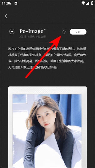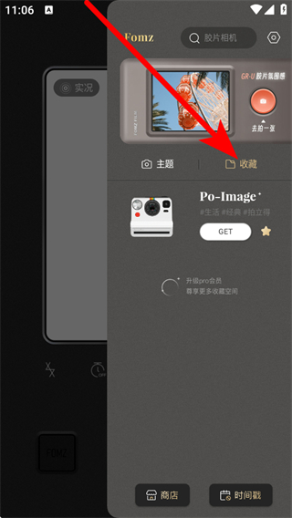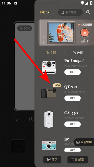2、在主題選擇界面,挑選一款想要收藏的相機,如Po-Image相機。