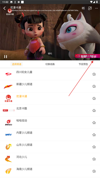4、進入該頻道的頁面內(nèi),可點擊畫面右側(cè)全屏的按鈕進行觀看。