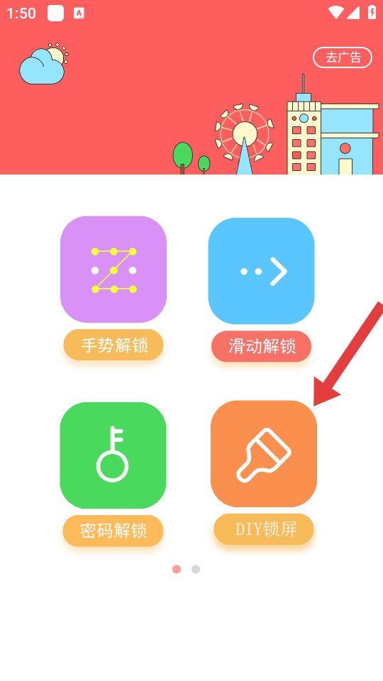 1、在鎖屏大全主界面,點擊DIY鎖屏的選項,進入DIY鎖屏設置頁面。