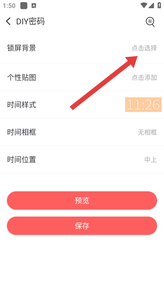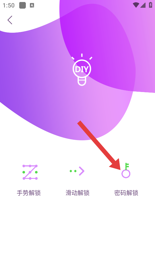 2、在DIY鎖屏設置頁面,點擊密碼解鎖選項,進入DIY密碼設置界面。