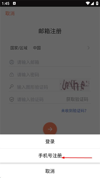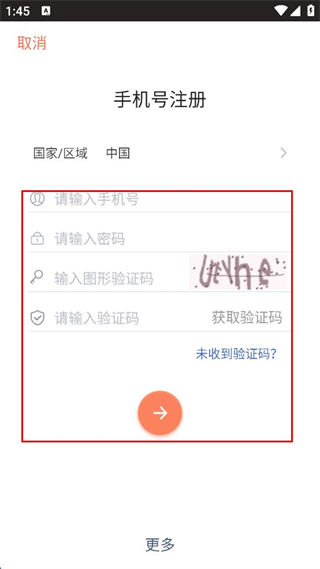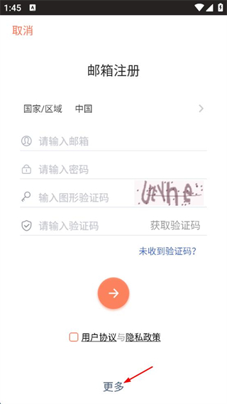 4、完成信息填寫后,點擊箭頭按鈕,即可完成注冊,注冊后可登錄使用軟件功能。