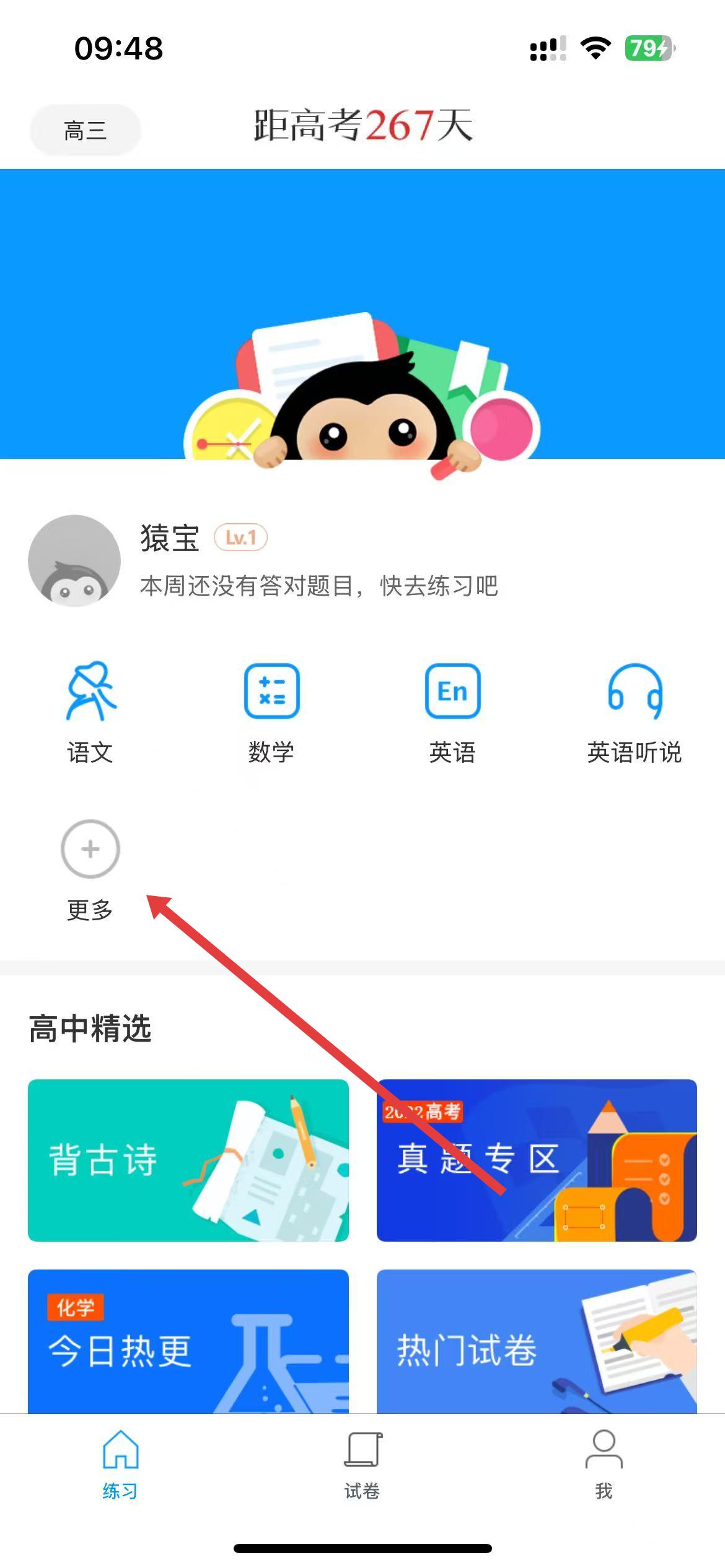 1、打開猿題庫app,在首頁點(diǎn)擊更多按鈕,進(jìn)入科目設(shè)置相關(guān)界面。