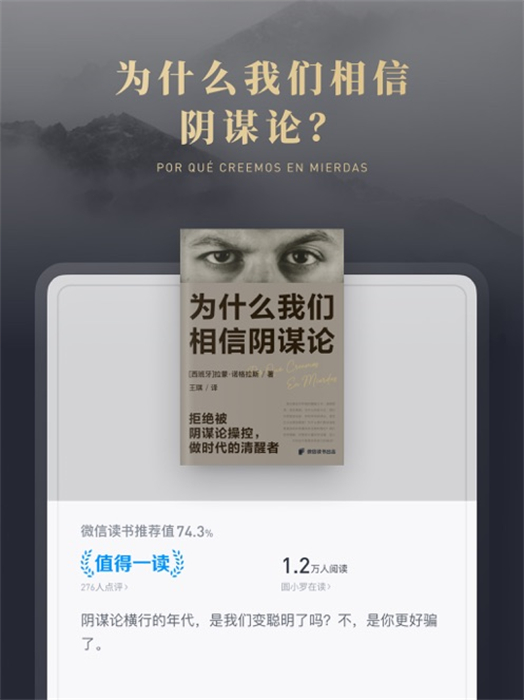 在提供極致閱讀體驗的同時,為用戶推薦合適的書籍,并可查看微信好友的讀書動態(tài)、與好友討論正在閱讀的書籍等。