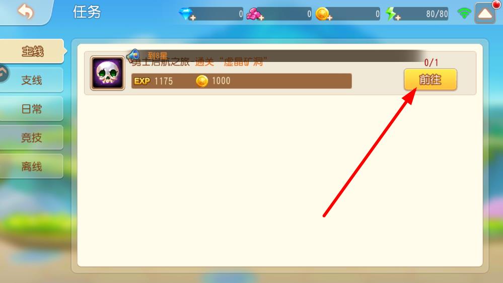 3、在任務界面里,選擇要查看的任務類型,點擊任務后的前往按鈕查看任務詳情。