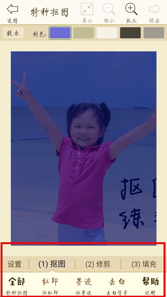 4、在特種摳圖界面,利用下方摳圖、修剪等工具完成摳圖。