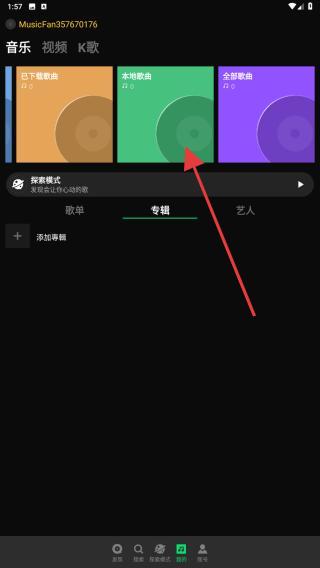 3、在本地歌曲的界面內(nèi),點(diǎn)擊+號(hào)進(jìn)行添加。