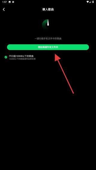 4、進(jìn)入導(dǎo)入歌曲的頁(yè)面內(nèi),可點(diǎn)擊開(kāi)始掃描所有文件即可查找能夠?qū)氲母枨?