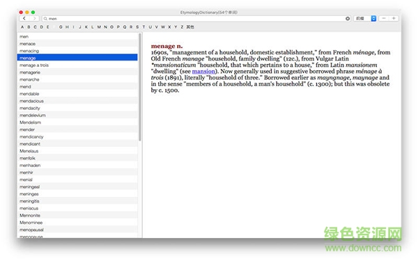 Etymology Dictionary mac版是一款為英語學習者準備的根源字典,幫助大家了解單詞的由來、詞根的變化,更牢固和有方法掌握英語詞匯的學習,需要的伙伴們快來綠色資源網(wǎng)下載吧!