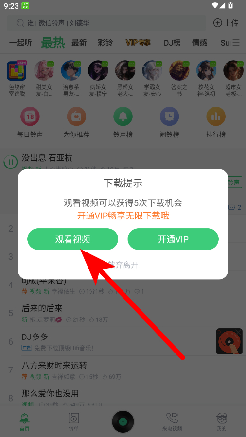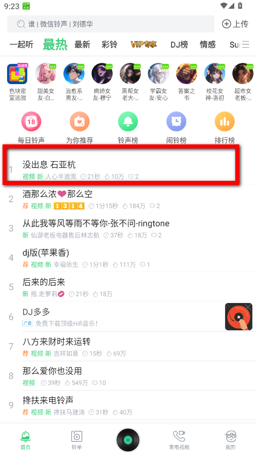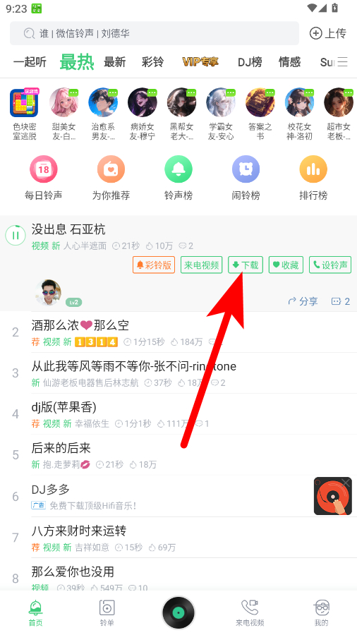 1、在鈴聲多多“最熱”頁面,找到想要下載的鈴聲,點擊該鈴聲。