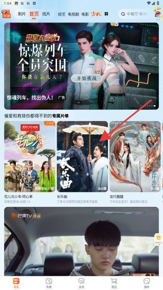1、打開芒果TVAPP,點(diǎn)擊任意視頻封面,如長樂曲,進(jìn)入視頻播放頁面。