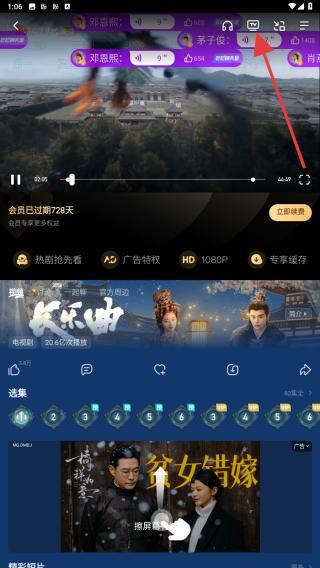 2、進(jìn)入到播放頁面,在視頻的右上角,需點(diǎn)擊TV投屏的圖標(biāo)。