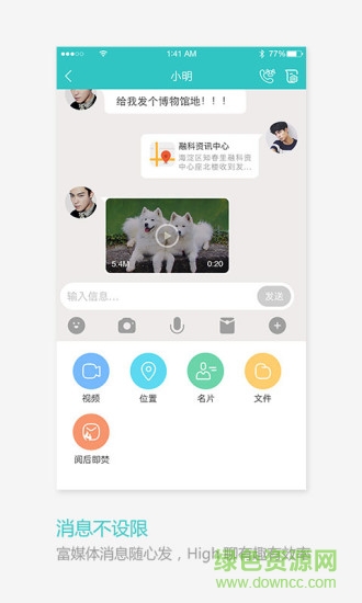 1.無需加好友,可對手機(jī)號發(fā)送文字、圖片、語音、視頻、位置、名片等豐富的消息內(nèi)容。支持對方不在線消息轉(zhuǎn)短信功能。