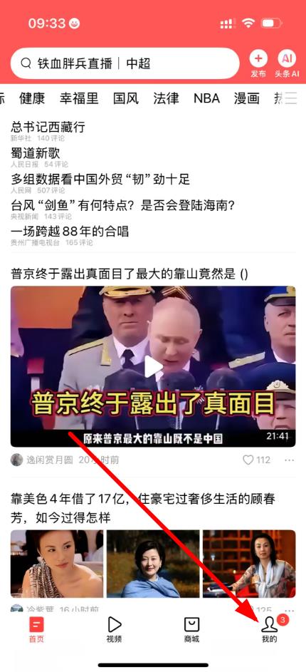 1、點擊今日頭條底部導(dǎo)航欄中的我的進(jìn)入個人頁面。