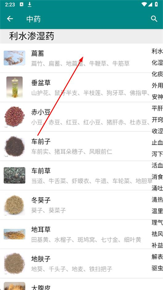 2、進(jìn)入中藥頁面后,找到想要了解的中藥,點(diǎn)擊該中藥名稱。