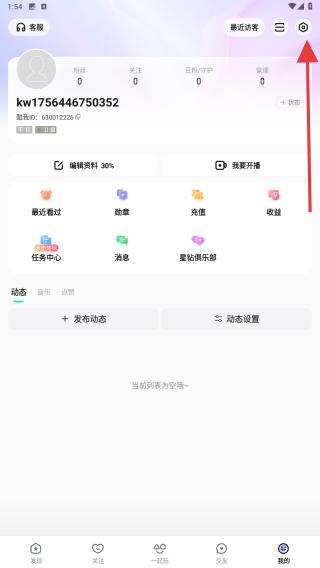 2、進入到個人主要內(nèi),點擊右上角設(shè)置的圖標。