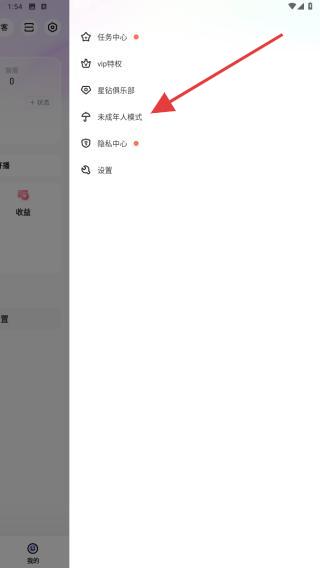 3、在右側(cè)展開的菜單欄中,點擊未成年人模式的按鈕。