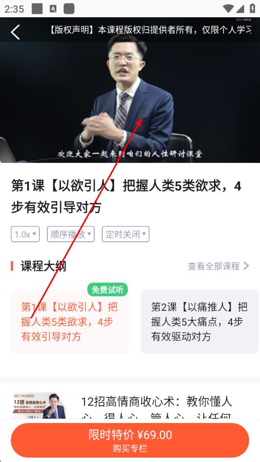 2、進(jìn)入課程播放頁(yè)面后,開始播放課程視頻。