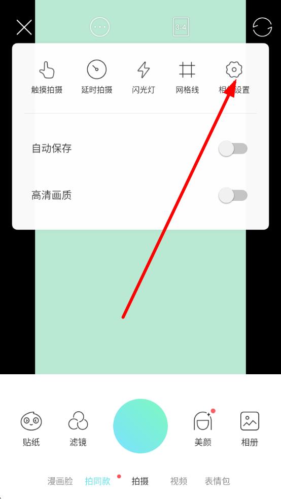 1、進入拍攝界面,點擊頂部…,打開設置菜單,選擇相機設置,進入APP參數(shù)配置頁。