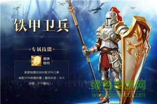戰(zhàn)士,作為最傳統(tǒng)的兵種之一,《王者遠(yuǎn)征》中設(shè)定了鐵甲衛(wèi)兵、獸人戰(zhàn)士、牛頭人酋長等不同的形象.以鐵甲衛(wèi)兵為例,他的專屬技能"盾牌格擋"就能夠大幅度的阻擋攻擊.