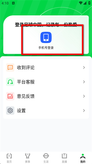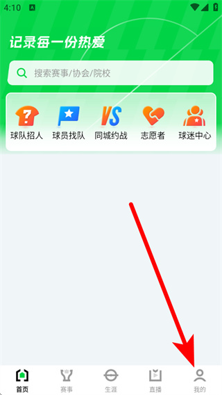 1、在綠茵中國APP首頁,點擊右下角我的選項,進入個人頁面。