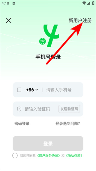 3、在登錄頁面,點擊新用戶注冊選項,進入注冊頁面。