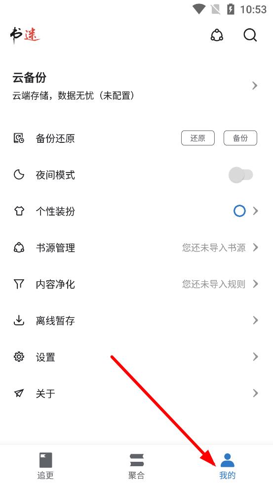 1、打開書迷應(yīng)用,點擊底部導(dǎo)航欄中的我的選項,進入個人設(shè)置界面。