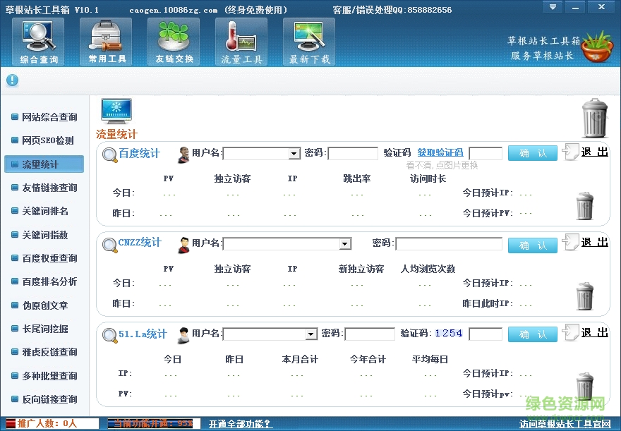 草根站長(zhǎng)工具箱是一款非常好的網(wǎng)站SEO工具,不僅可以快速查詢網(wǎng)站的權(quán)重、關(guān)鍵詞指數(shù)、長(zhǎng)尾詞發(fā)掘能,還能為你自動(dòng)推廣、友鏈交換,功能繁多而強(qiáng)大,是您網(wǎng)站優(yōu)化推廣的好助手,喜歡的朋友快來綠色資源網(wǎng)下載吧!