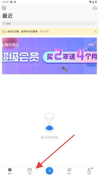 1、啟動騰訊微云APP并登錄,在首頁內(nèi)點擊文件的圖標。