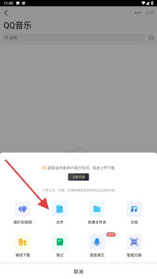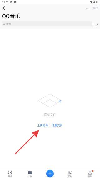 3、進入QQ音樂文件內(nèi)部,點擊正中間上傳文件的功能按鈕。