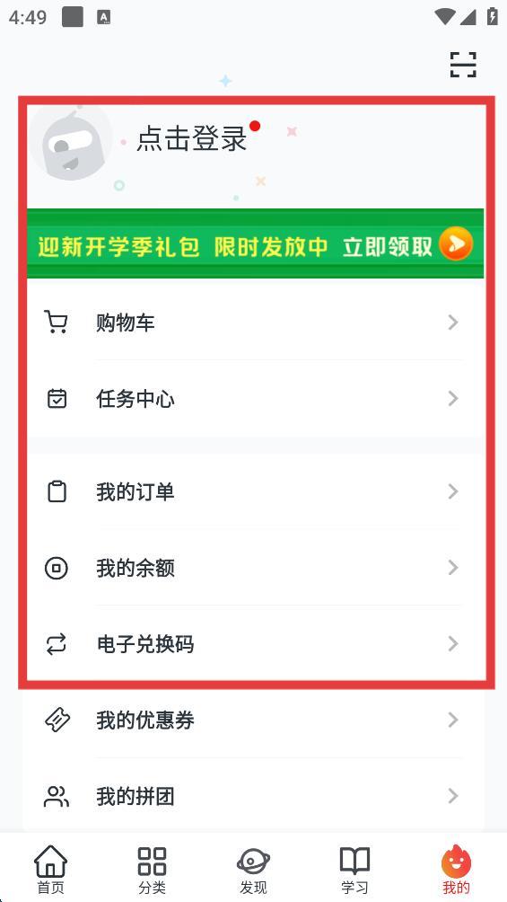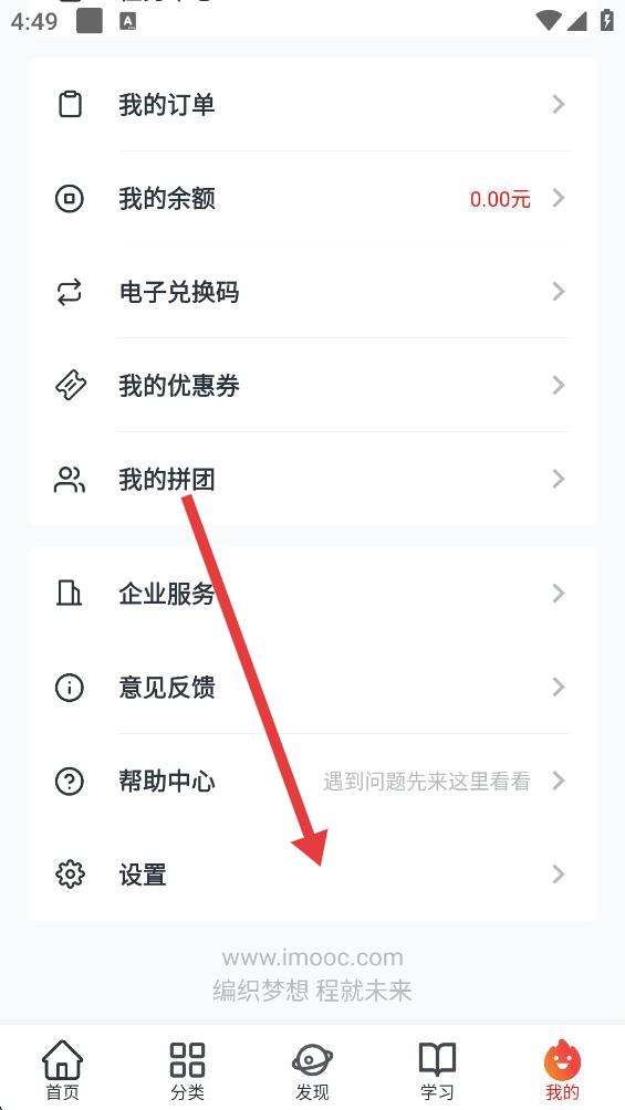 1、打開(kāi)慕課網(wǎng)App,在個(gè)人頁(yè)面,點(diǎn)擊設(shè)置選項(xiàng)。