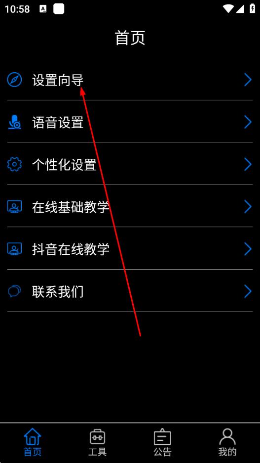 1、打開保益悅聽App,在首頁點(diǎn)擊設(shè)置向?qū)нx項(xiàng)。