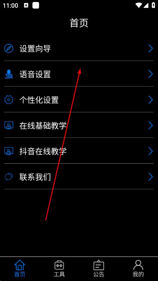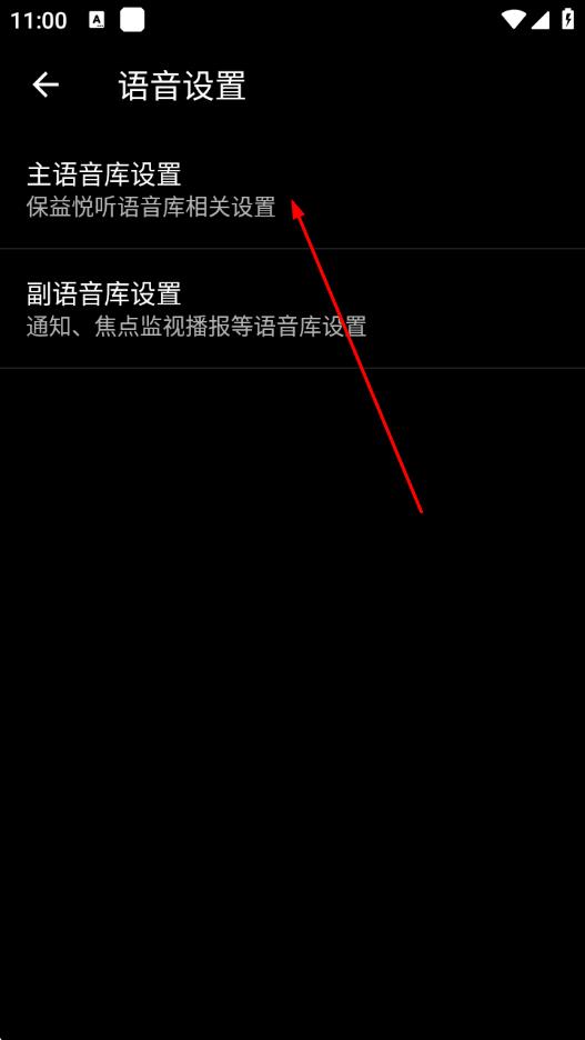 1、打開保益悅聽App,在首頁點(diǎn)擊語音設(shè)置選項(xiàng)。