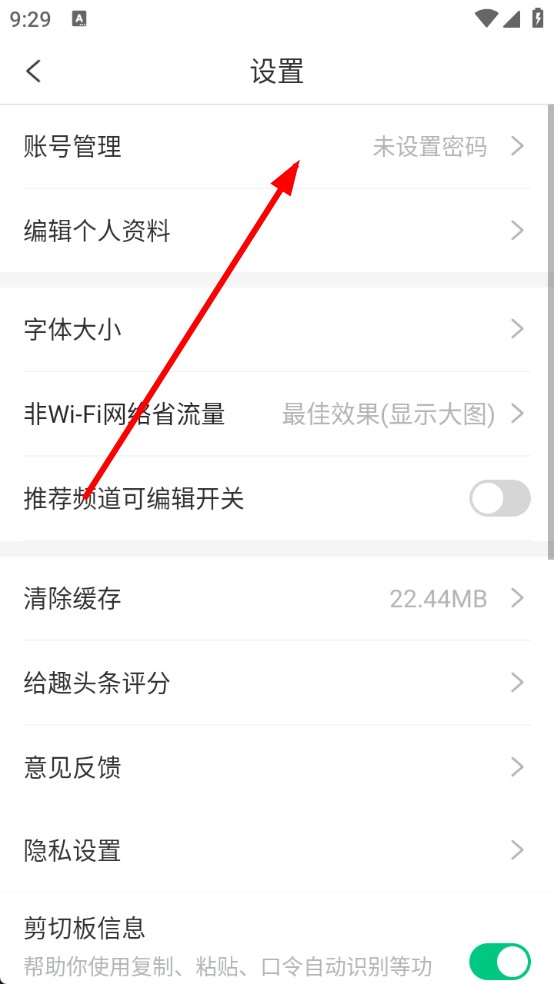 2、進(jìn)入設(shè)置頁(yè)面后,點(diǎn)擊賬號(hào)管理選項(xiàng)。