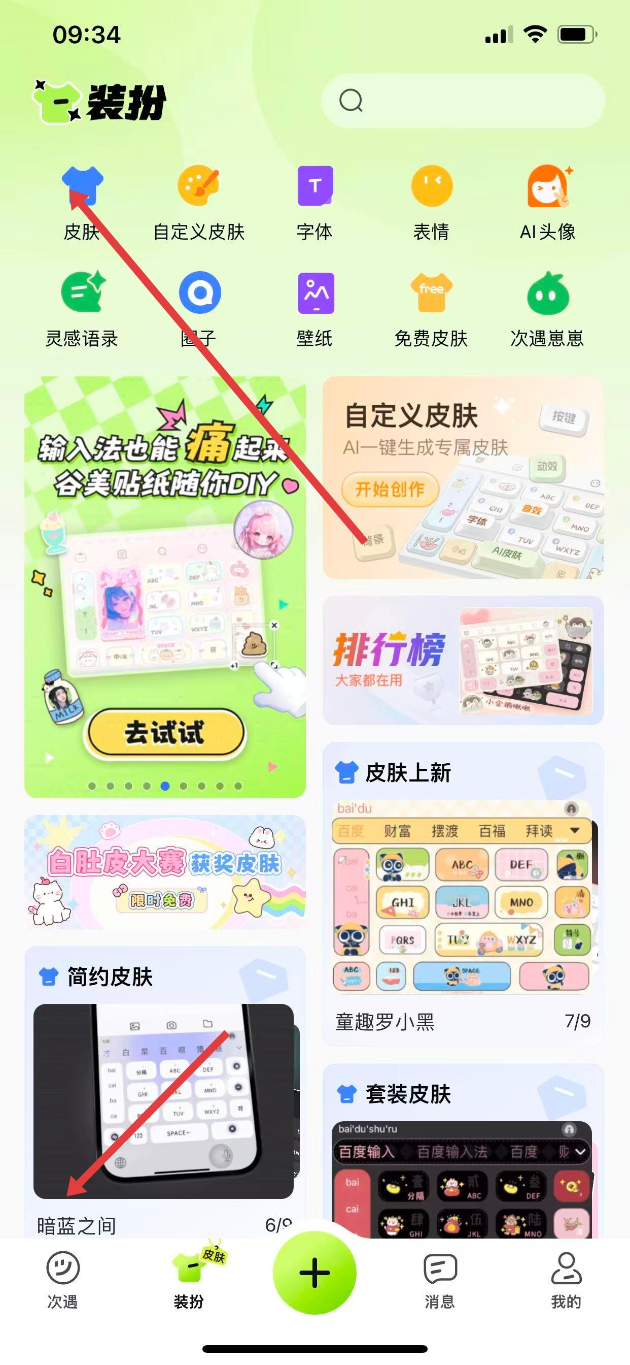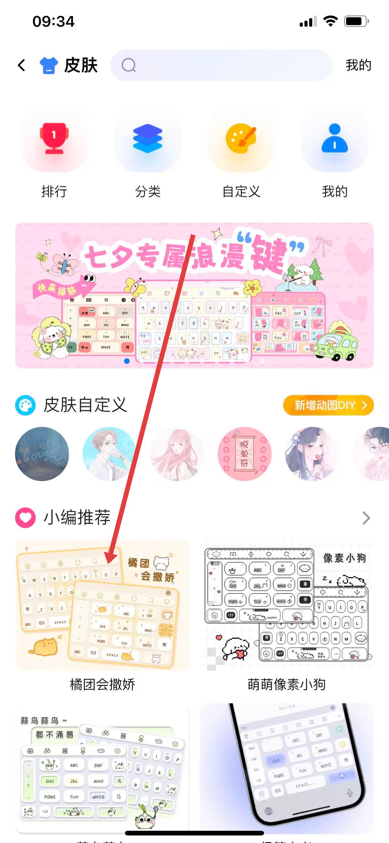 2、在皮膚頁面中,點(diǎn)擊心儀的鍵盤皮膚。