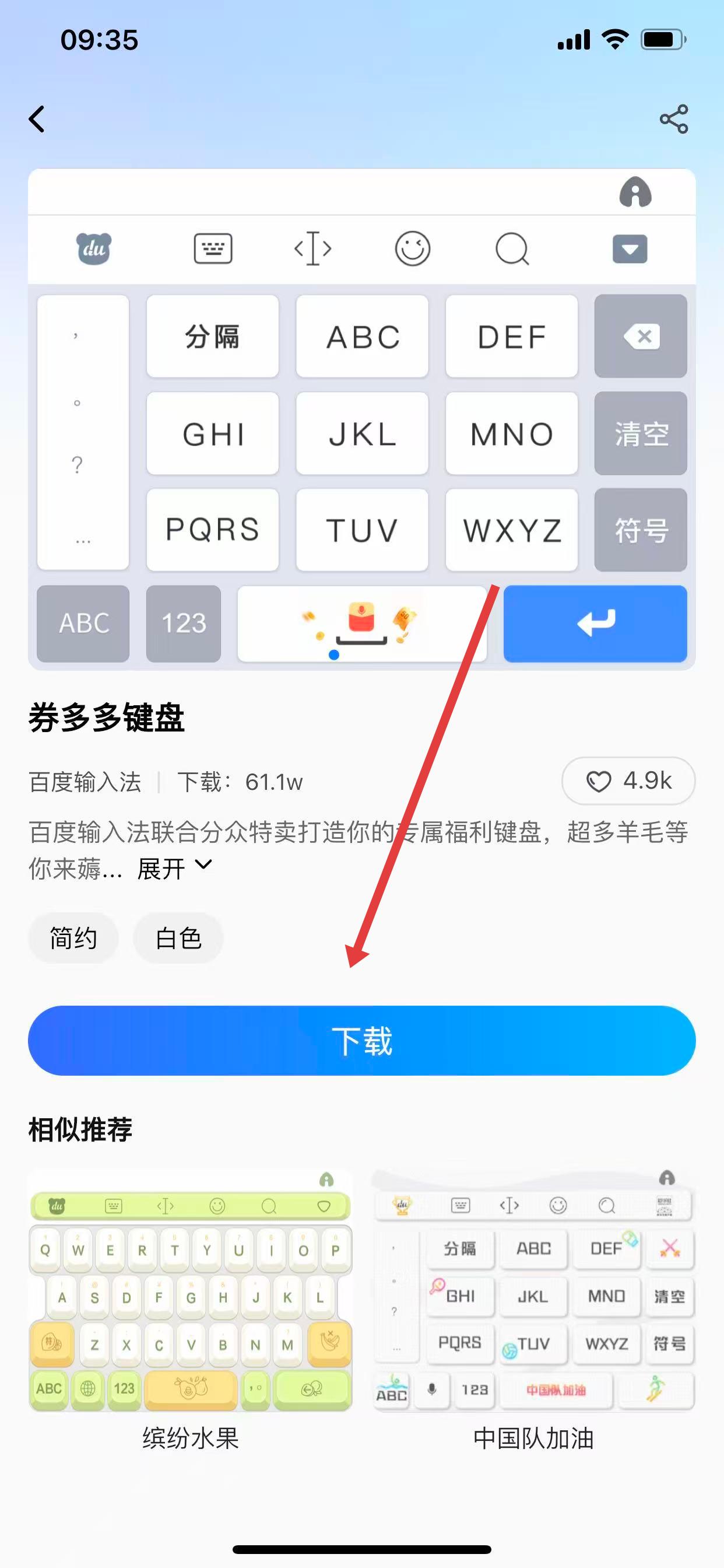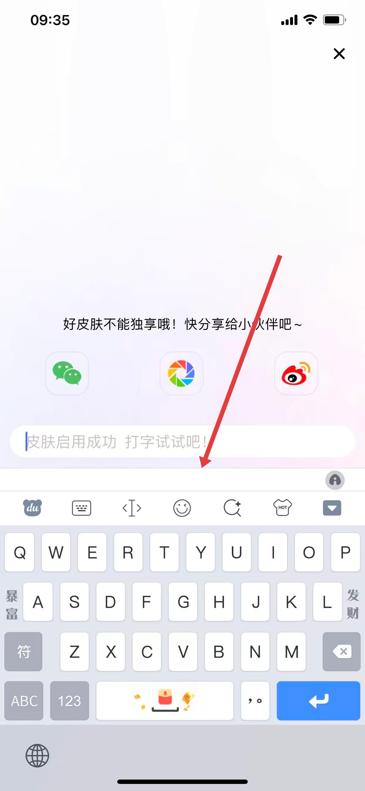 4、下載完成后自動(dòng)應(yīng)用皮膚,輸入法鍵盤界面更新為新皮膚樣式。