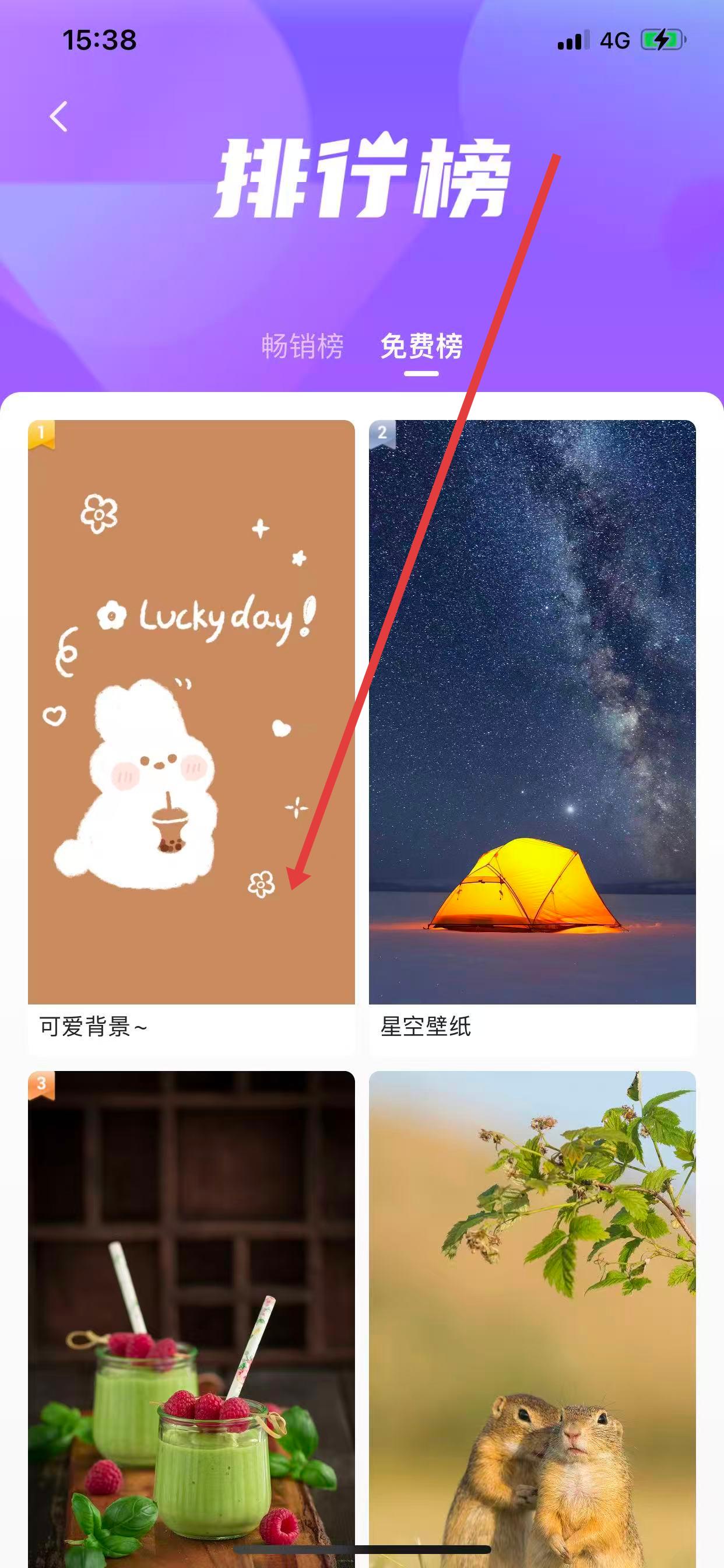 2、進(jìn)入壁紙頁面后,通過免費(fèi)壁紙、排行榜等分類篩選喜歡的壁紙,找到心儀的壁紙后,點(diǎn)擊該壁紙。