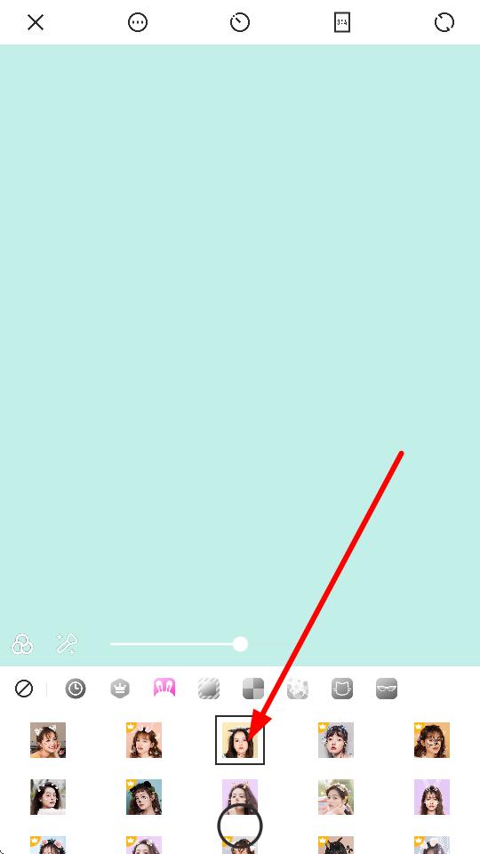 3、拍完照片后點擊底部的貼紙、濾鏡等功能按鈕,或者從下方樣式庫中選擇喜歡的貼紙、濾鏡效果,對照片進行美化編輯,完成后保存即可。