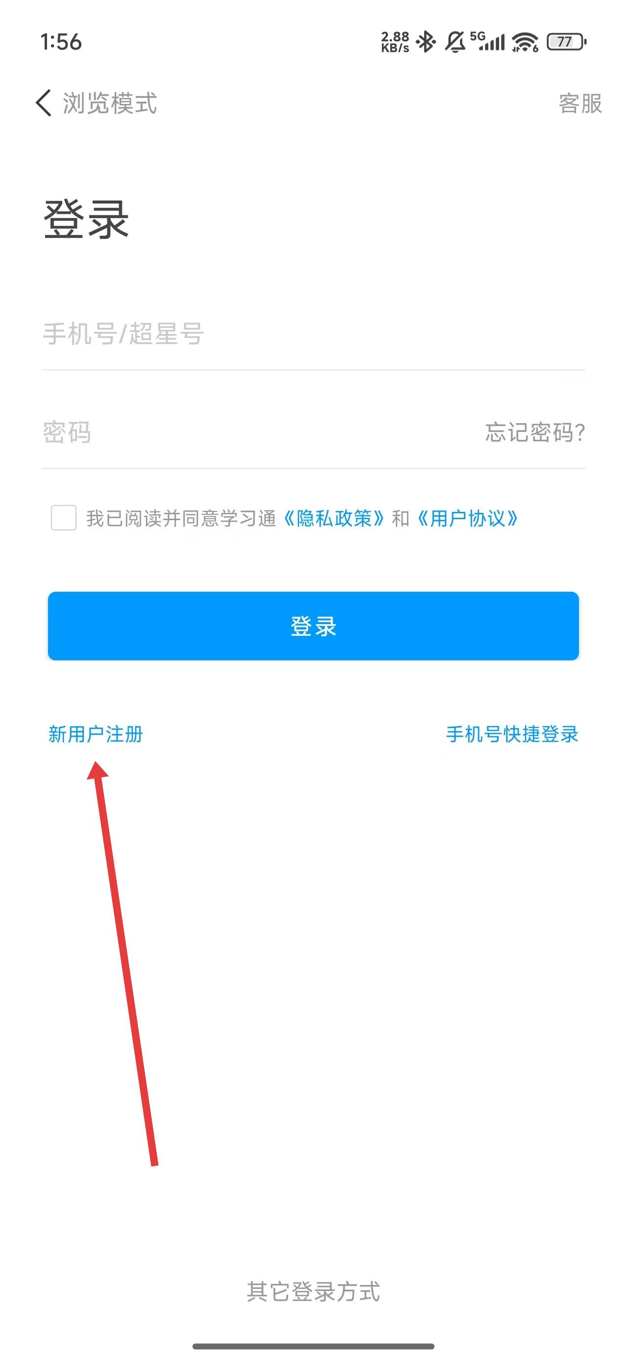 1、在進(jìn)入到登錄頁面時(shí),如果沒有賬號可以點(diǎn)擊下方新用戶注冊按鈕,進(jìn)行注冊。