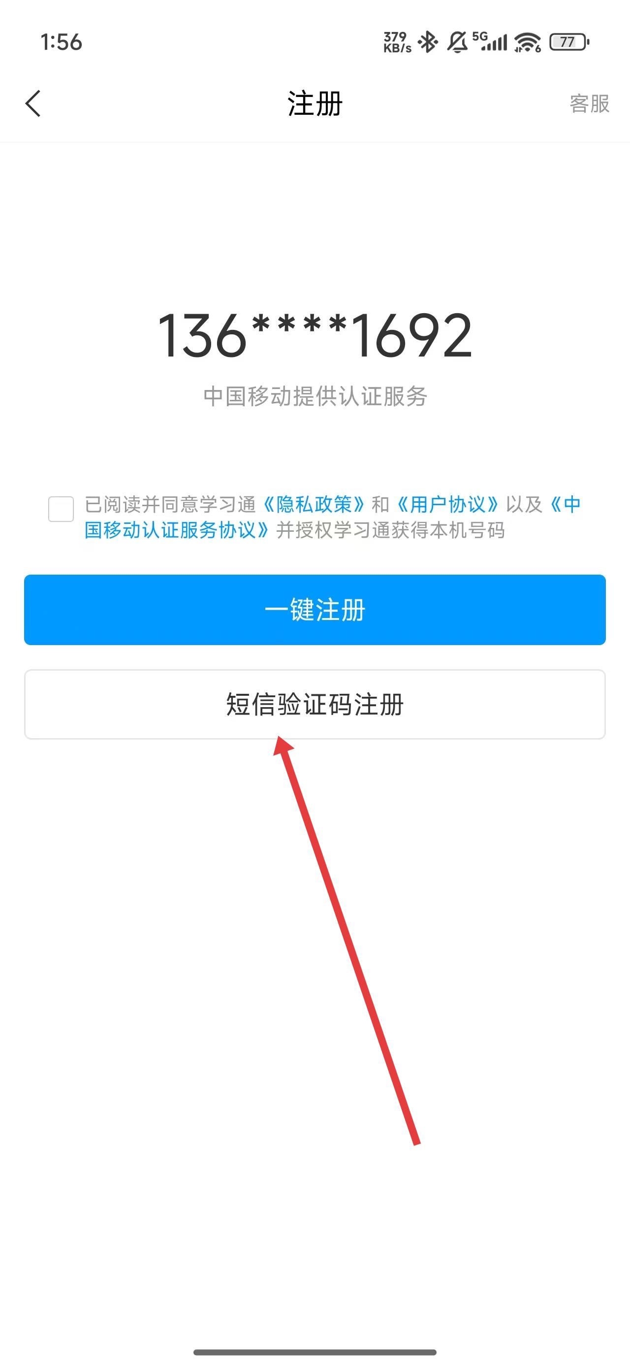 2、進(jìn)入到注冊頁面中,可以點(diǎn)擊短信驗(yàn)證碼注冊按鈕,使用驗(yàn)證碼注冊賬號。