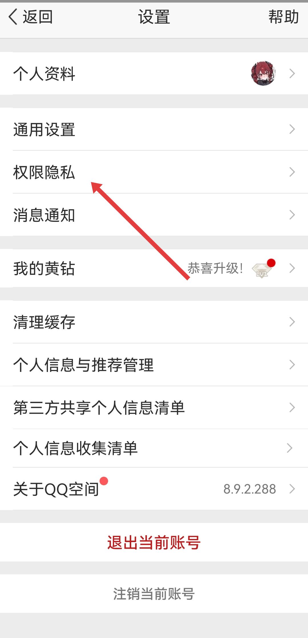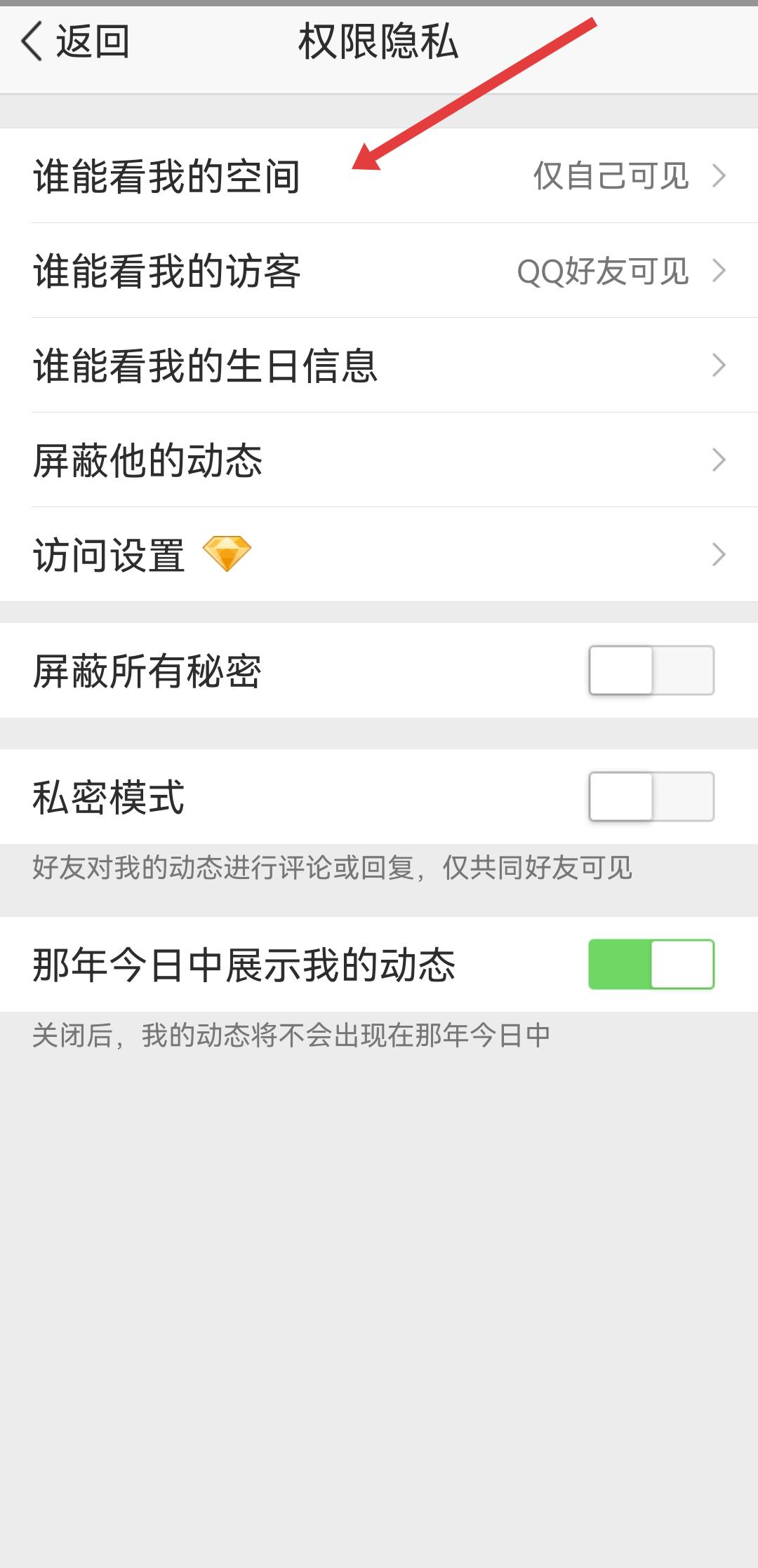 3、在權(quán)限隱私設(shè)置頁面里,點擊誰能看我的空間選項,進入后在可見范圍列表中選擇僅自己可見。