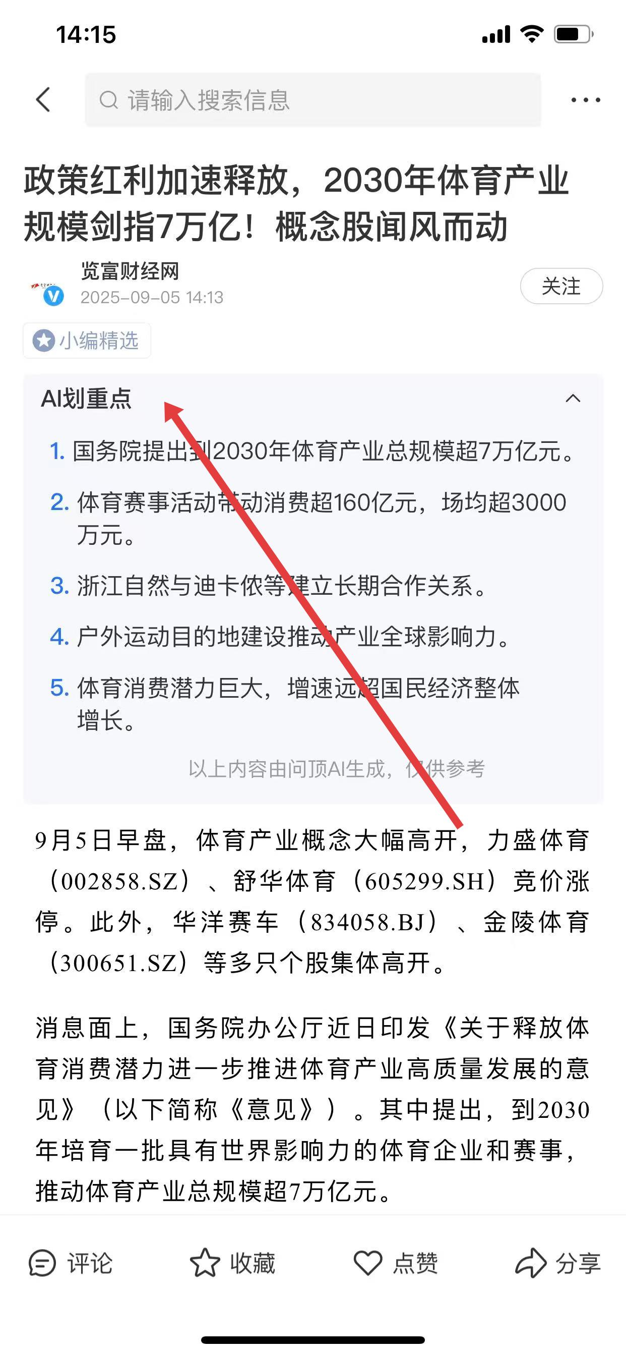 3、可以查看ai劃重點部分,快速獲得新聞內(nèi)容。