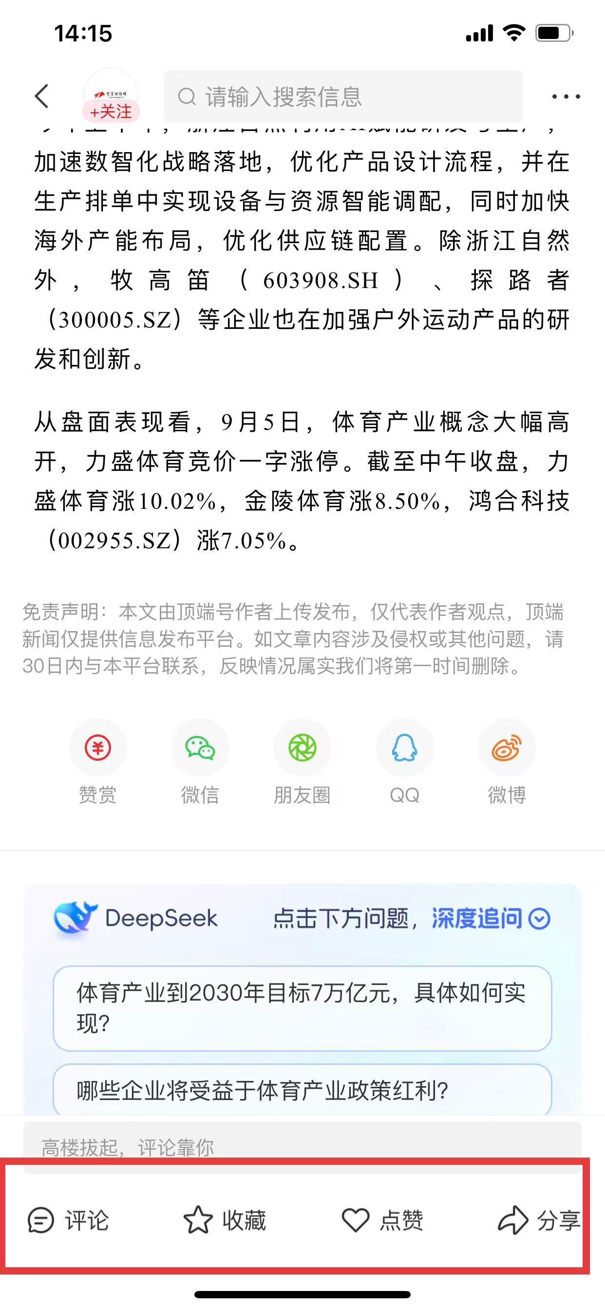 4、可對文章進(jìn)行評論、收藏、點贊、分享等操作。